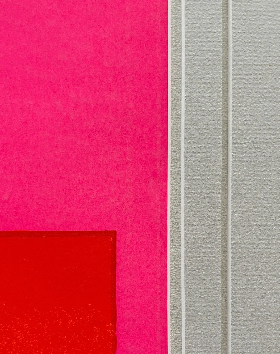 Abstract colorfield screen print with custom framing by Rupprecht Geiger, Germany. This piece is from the 1966 portfolio 'Zurückgehen, Weitergehen, Fortgehen'. Measures 11" W x 14" H image / 18" W x 21" H framed. Good condition with one crease on edge.
